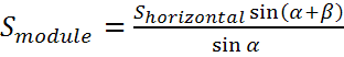 The amount of solar radiation incident on a tilted module surface is the component of the incident solar radiation which is perpendicular to the module surface. The following figure shows how to calculate the radiation incident on a tilted surface (Smodule) given either the solar radiation measured on horizontal surface (Shoriz) or the solar radiation measured perpendicular to the sun (Sincident).