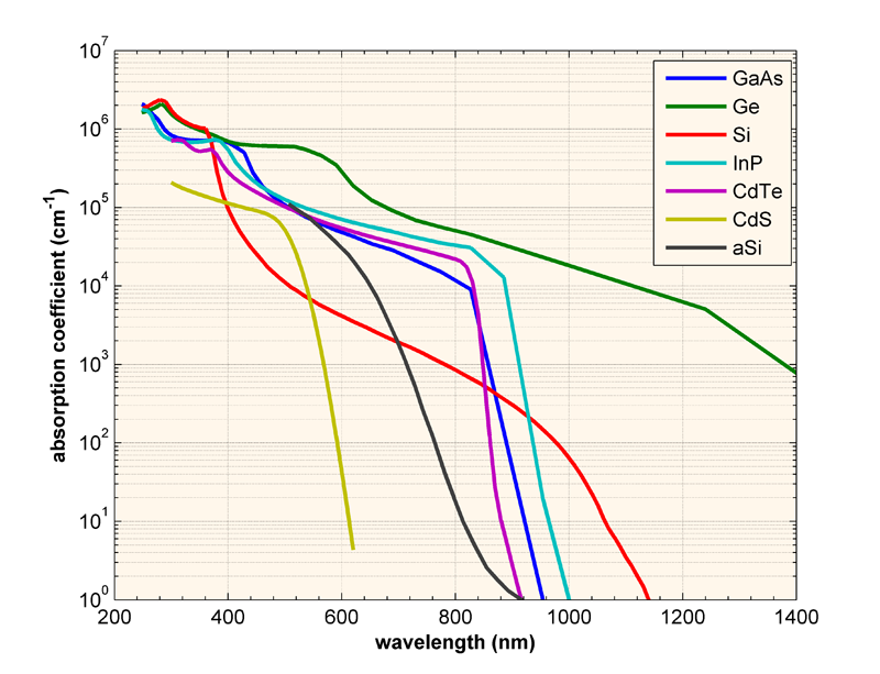 - Knowing the absorption coefficients of materials aids engineers in determining which material to use in their solar cell designs.