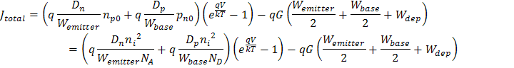 We still start out with the same equation derived from the continuity equations. However, in this case the recombination is zero, so the equation becomes: