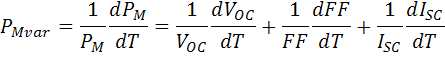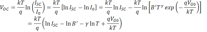 where EG0 = qVG0. Assuming that dVoc/dT does not depend on dIsc/dT, dVoc/dT can be found as;