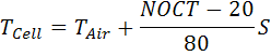 The best module operated at a NOCT of 33°C, the worst at 58°C and the typical module at 48°C respectively. An approximate expression for calculating the cell temperature is given by [2]: