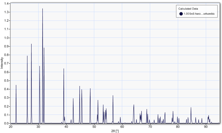 The graph below shows peak intensities for SnS: